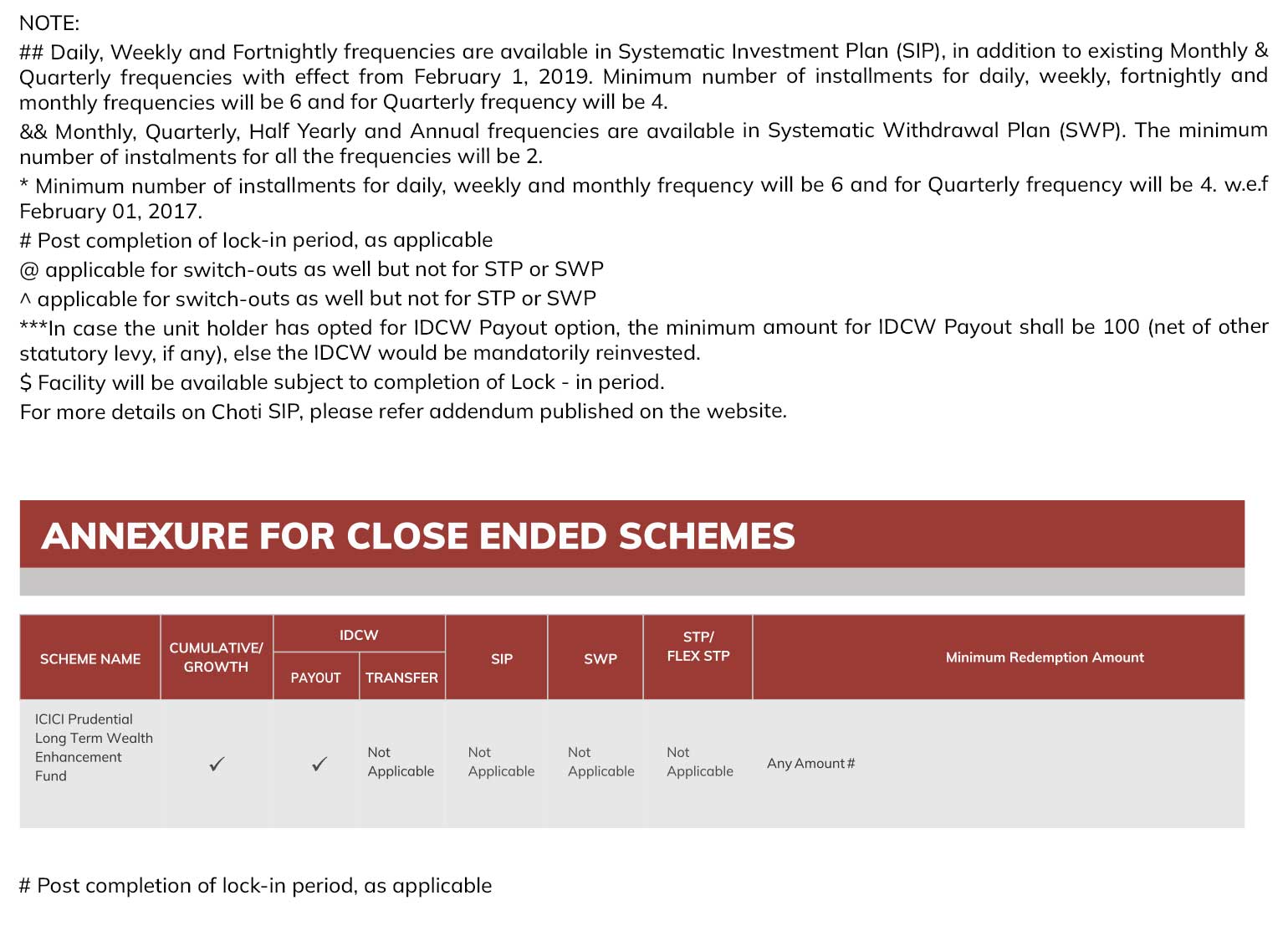 FUND DETAILS ANNEXURE FOR CLOSE ENDED SCHEMES