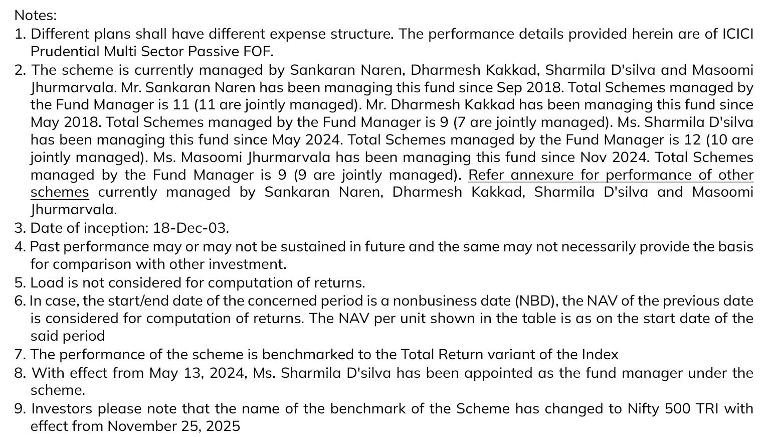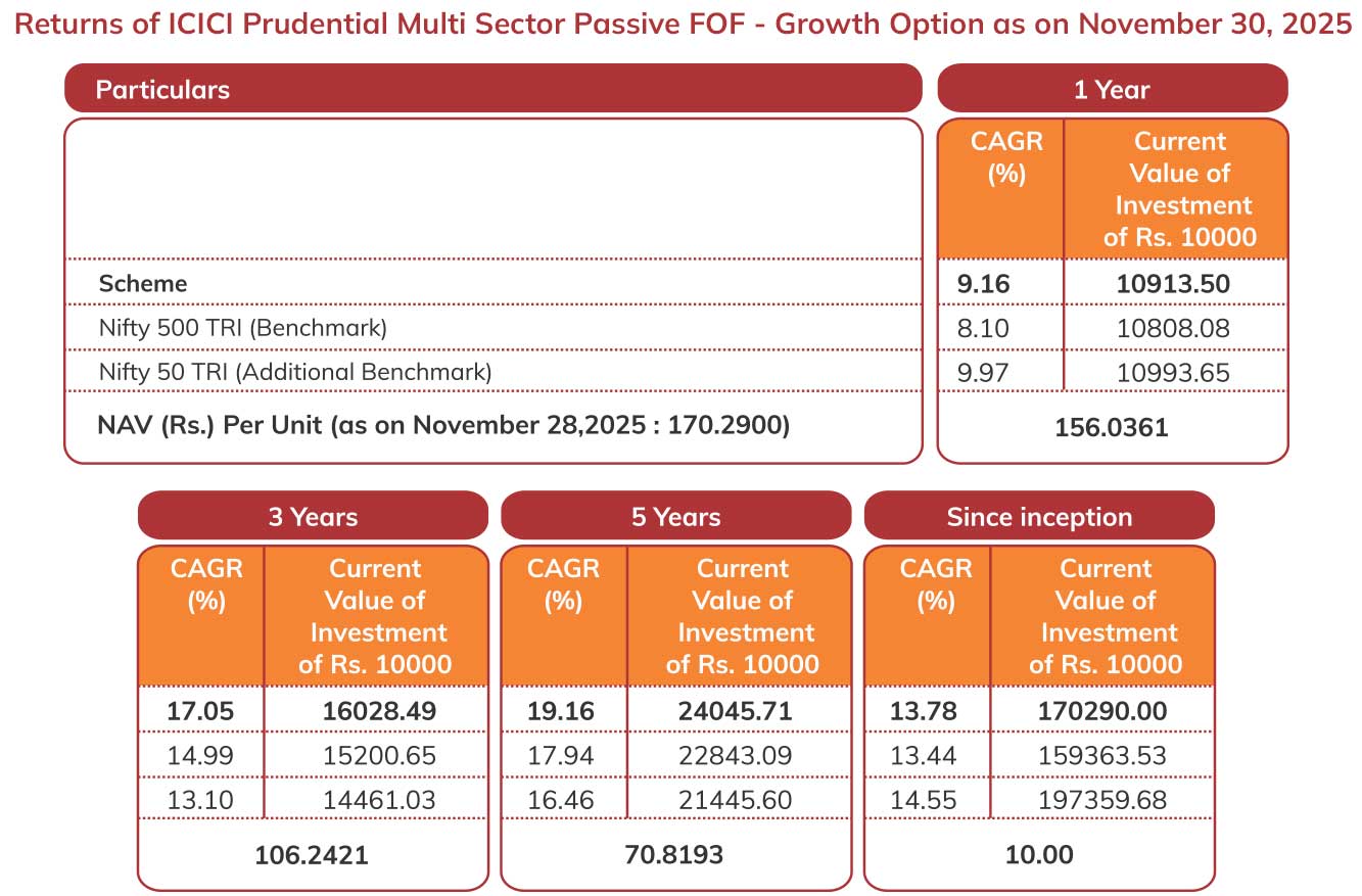 ICICI Prudential Multi Sector Passive FOF (Erstwhile ICICI Prudential Passive Strategy Fund (FOF)) (An open ended Fund of Funds scheme investing predominantly in Units of passive domestic sector/multi sector based Equity Oriented Exchange Traded Funds (ETFs))