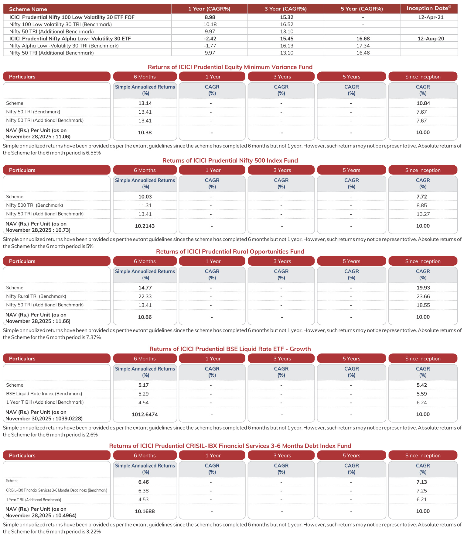 Returns shown for Growth/IDCW Option wherever applicable as on 30th November 2025