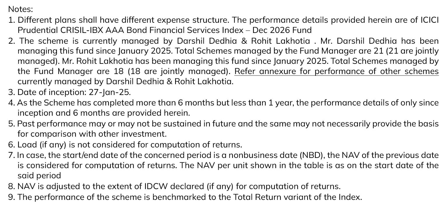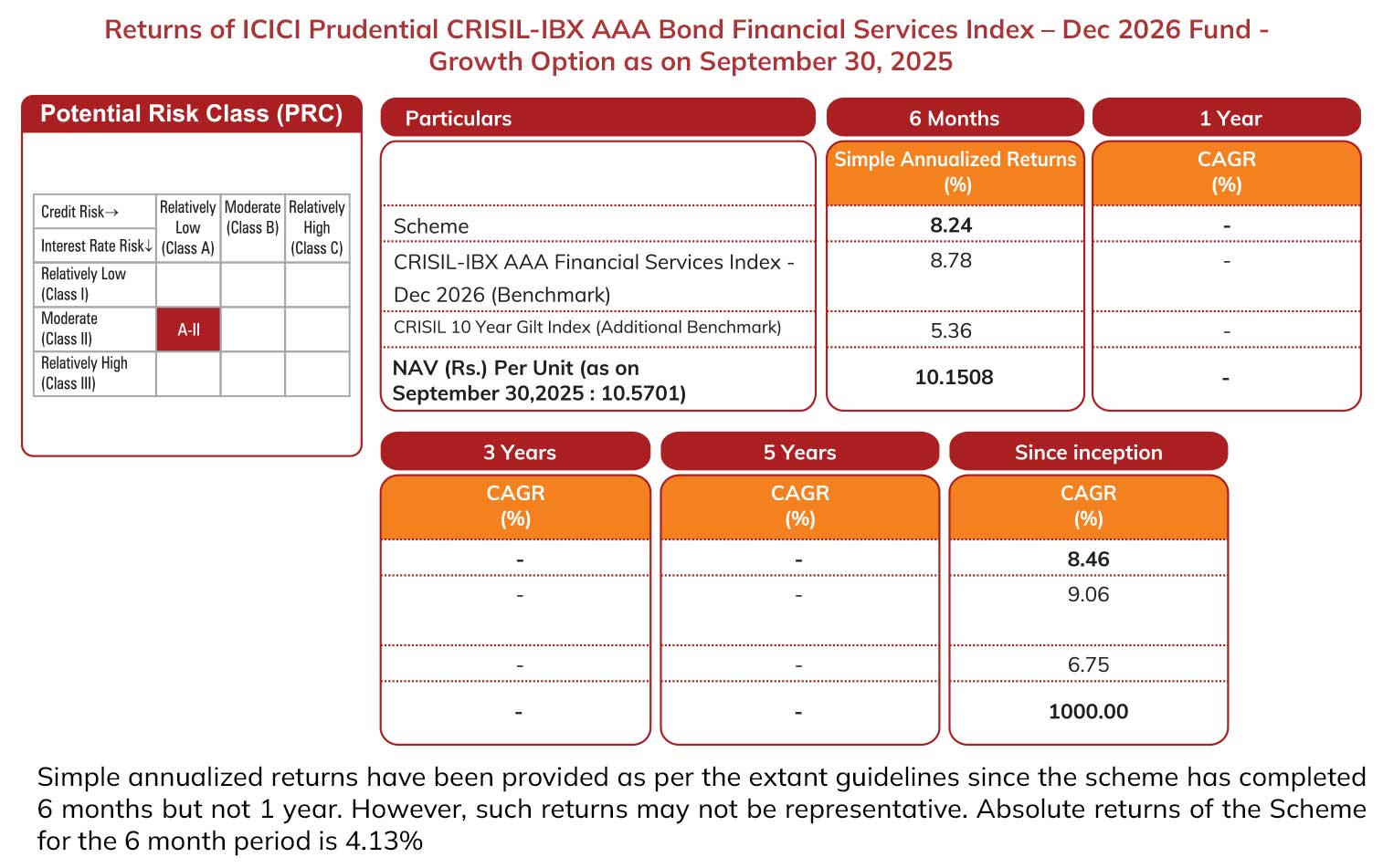 ICICI Prudential CRISIL-IBX AAA Bond Financial Services Index - Dec 2026 Fund (An open-ended target maturity Index Fund investing in the constituents of CRISIL-IBX AAA Financial Services Index - Dec 2026. A moderate interest rate risk and relatively low credit risk.)